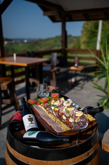 Otkrijte okuse Zagorja uz platu suhomesnatih delicija koje prate osvježavajuća salata i domaći kruh, idealno za dijeljenje u dobrom društvu.